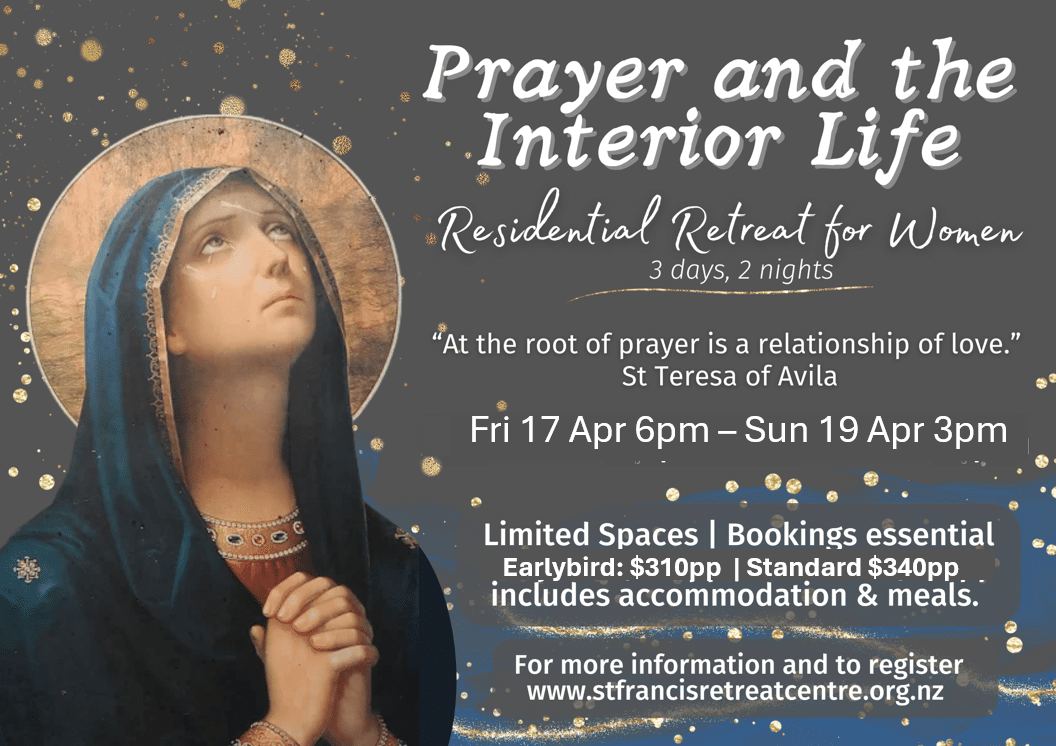 Join us for a reflective women’s prayer retreat in the Catholic tradition for talks on prayer, with time for personal prayer, Holy Mass and Eucharistic Adoration and spiritual direction. All women are welcome. Earlybird $310 pp (before 1 Mar) | Standard $340pp (All meals (6) and accommodation (2) included)